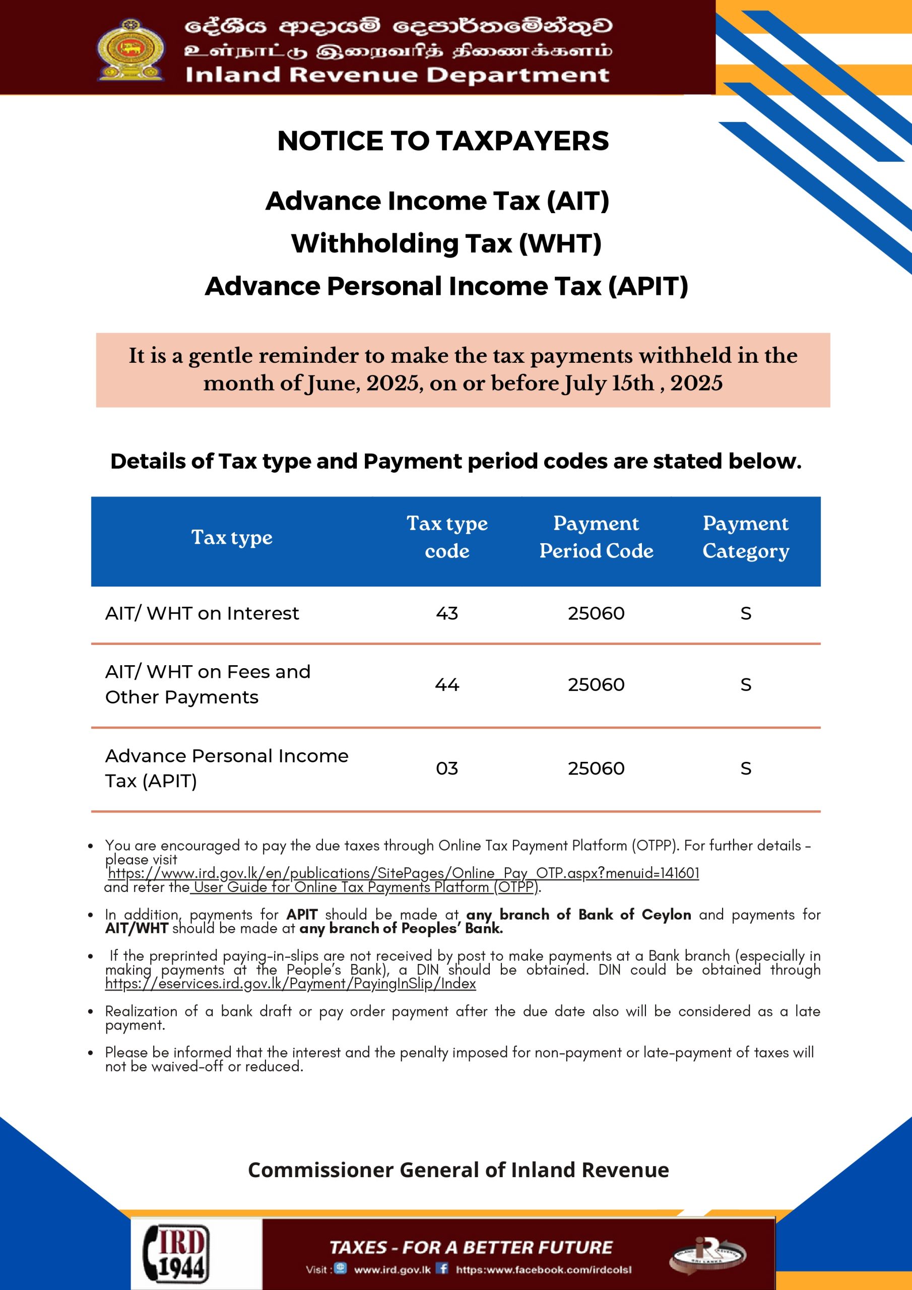 Stay informed with the latest updates from the Inland Revenue Department of Sri Lanka. The newly released tax payment codes are crucial for both individuals and businesses to ensure accuracy in tax submissions.